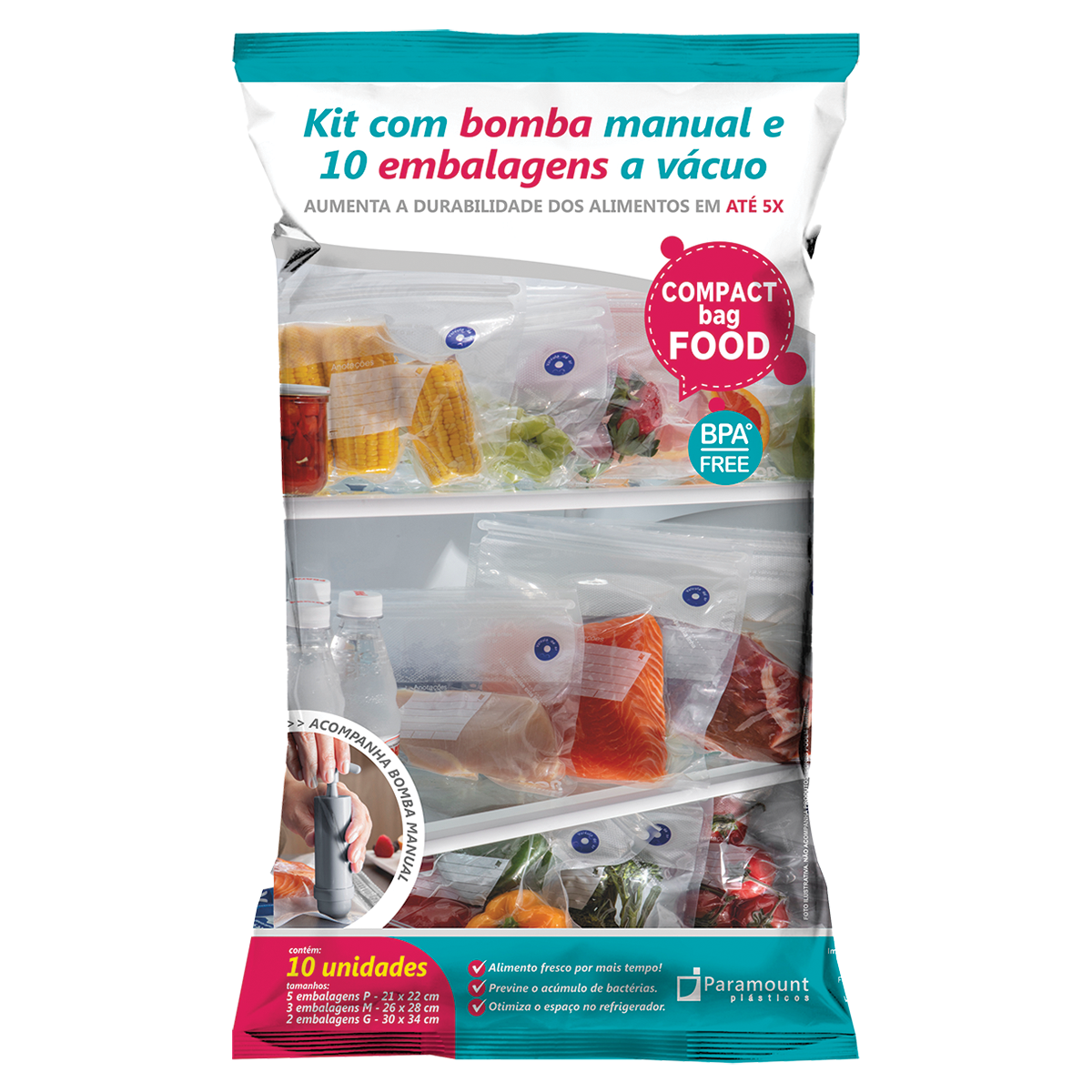 Kit com 10 Compact Food + Bomba Manual - Paramount Plásticos