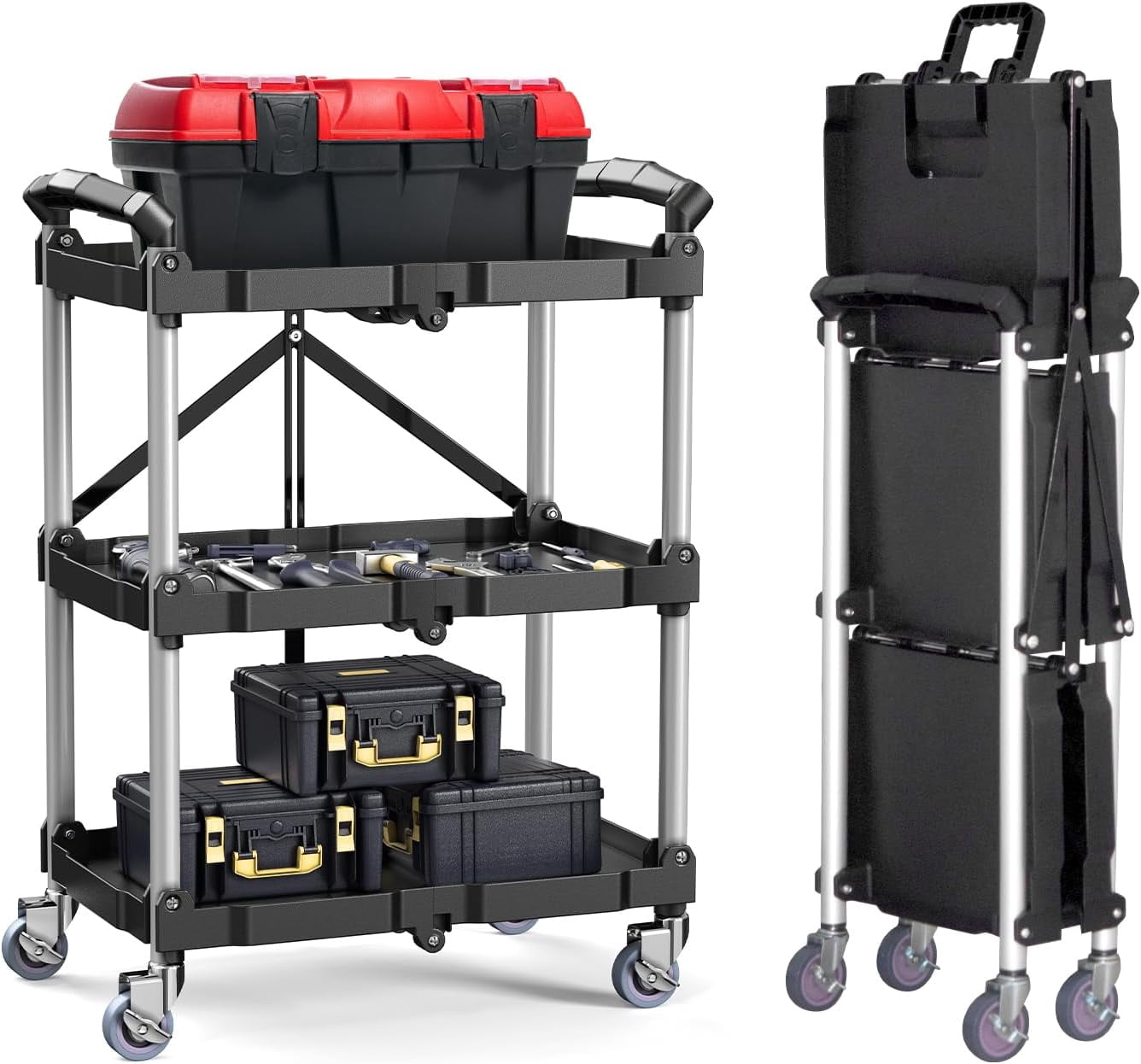 Amazon.com: WORKPRO 3-Tier Collapsible Service Cart, 210 LBS Foldable ...