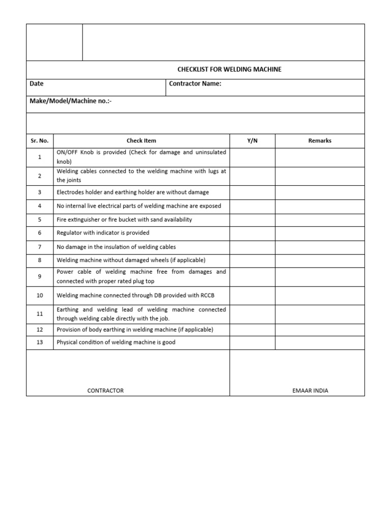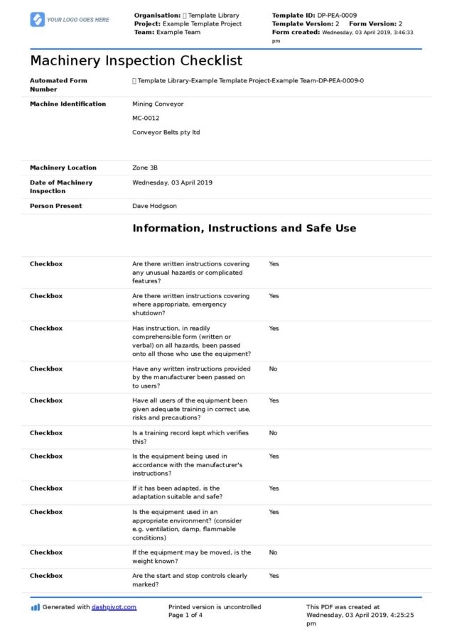 Equipment / Machinery Checklist: Blank | PDF | Machine (Mechanical ...