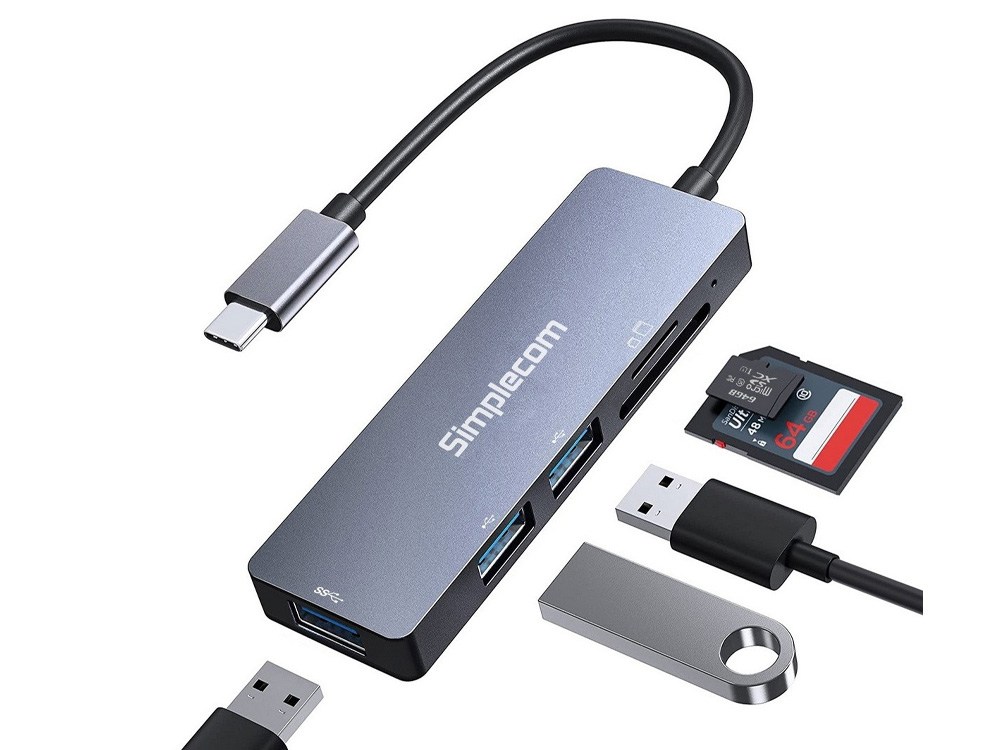 Simplecom CH255 USB-C 5-in-1 Multiport Adapter 3-Port USB-A Hub with SD ...