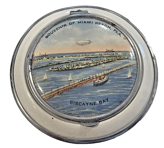 VINTAGE MIAMI BEACH-BISCAYNE Bay Souvenir Powder Compact circa 1950's ...