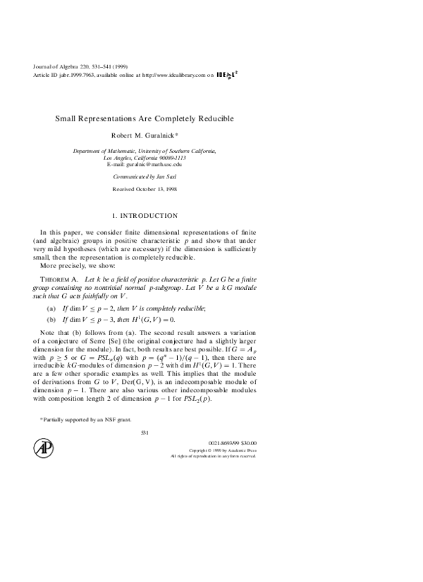(PDF) Small Representations Are Completely Reducible