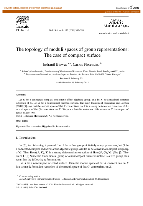(PDF) The topology of moduli spaces of group representations: The case ...