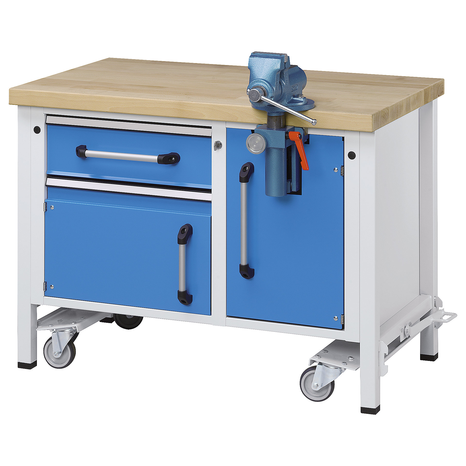 ANKE – Compact workbench, mobile: mobile, with 1 drawer and vice ...