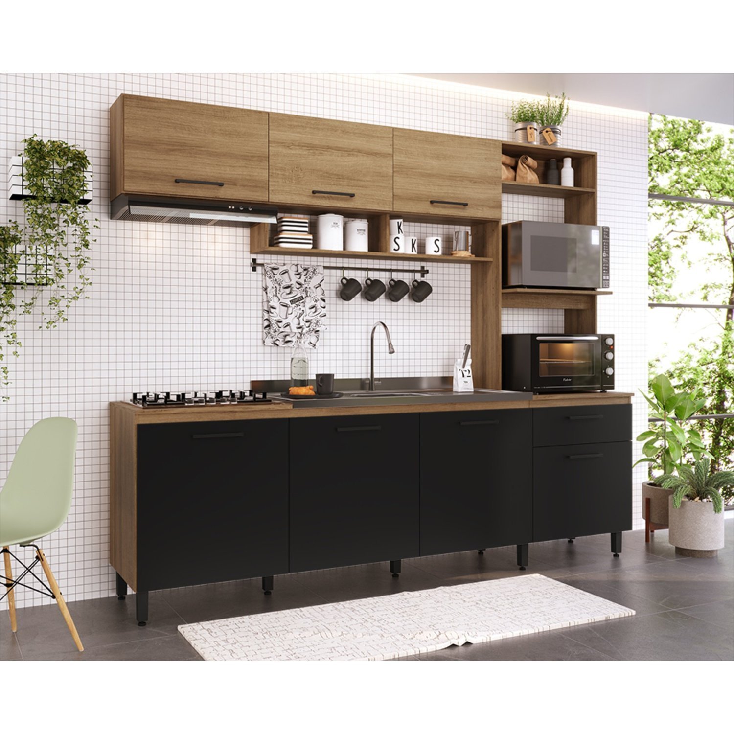 Cozinha Compacta 4 Peças com Duplo Aéreo Emily | MadeiraMadeira