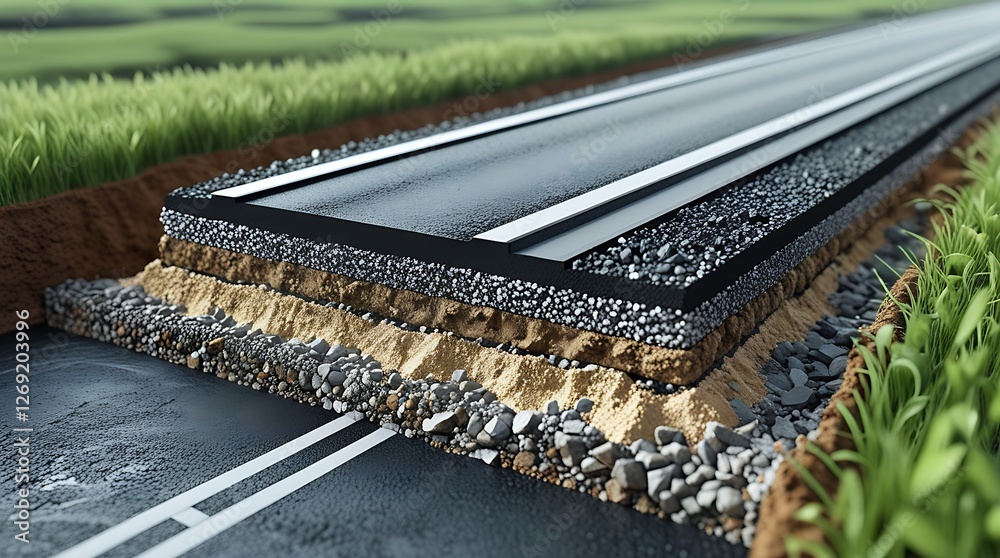 3D Cross-Sectional Illustration of a Modern road Structure with ...