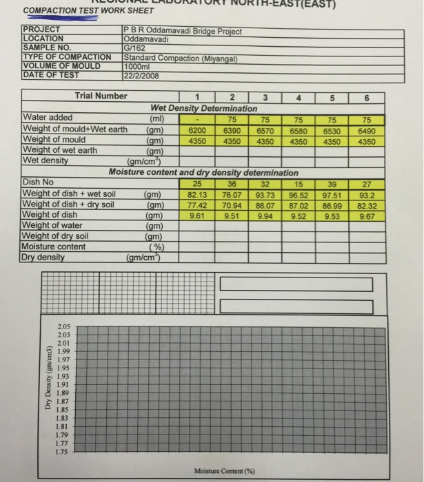 Solved T WORK SHEET EASTIEAST) COMPACTION TEST WORK SHEET | Chegg.com