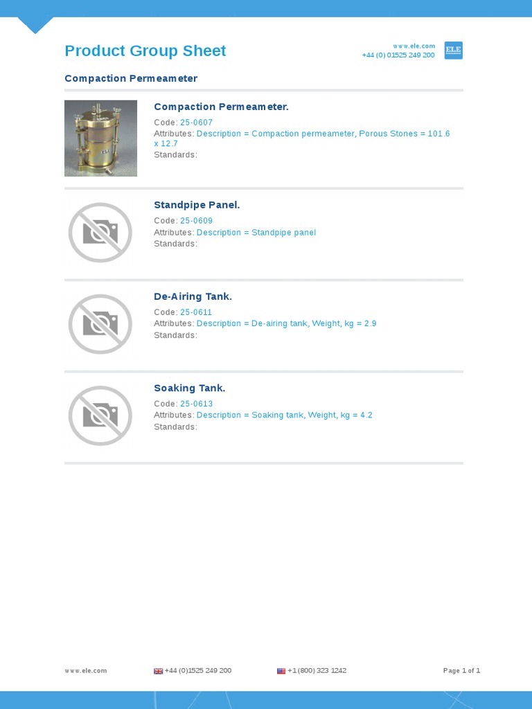 Product Group Sheet: Compaction Permeameter Compaction Permeameter ...