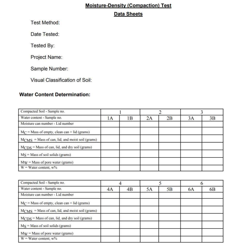 Soil Compaction Test data sheet | Download Scientific Diagram