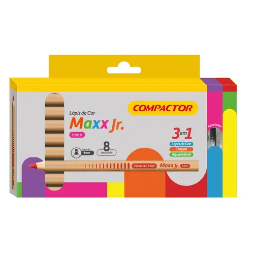 LAPIS COR AQUARELAVEL 08 CORES COMPACTOR MAXX JUNIOR TEEN + APONTADOR 4 ...