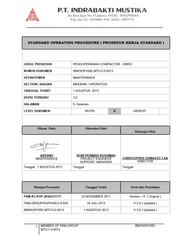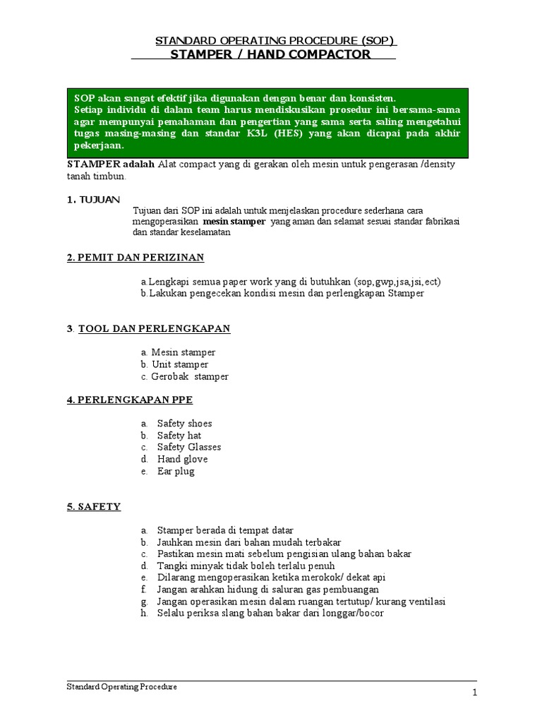Prosedur Operasional Hand Compactor | PDF | Bisnis | Teknologi & Rekayasa