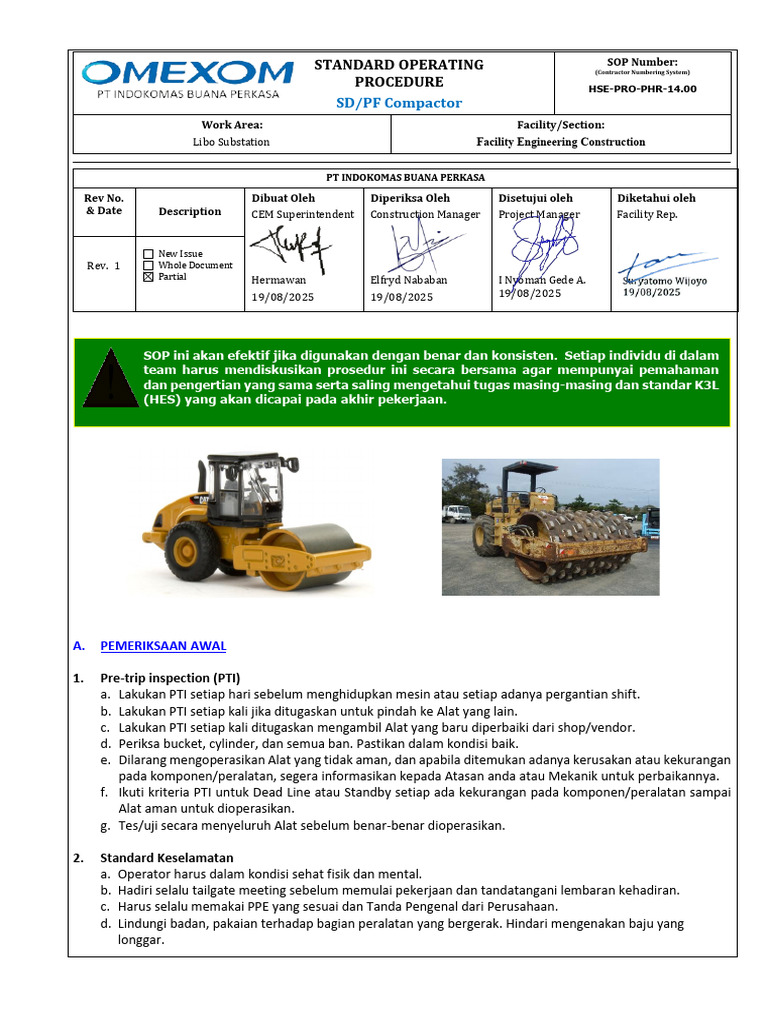 SOP Pengoperasian SD/PF Compactor | PDF