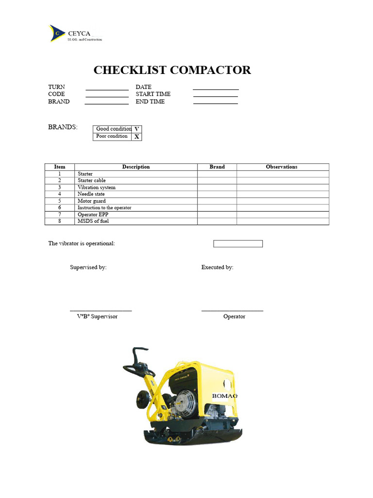 Compactor Safety Inspection Checklist | PDF | Equipment | Safety