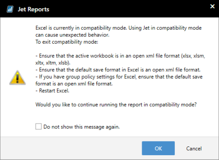 Warning Message - Excel is Currently in Compatibility Mode – Jet