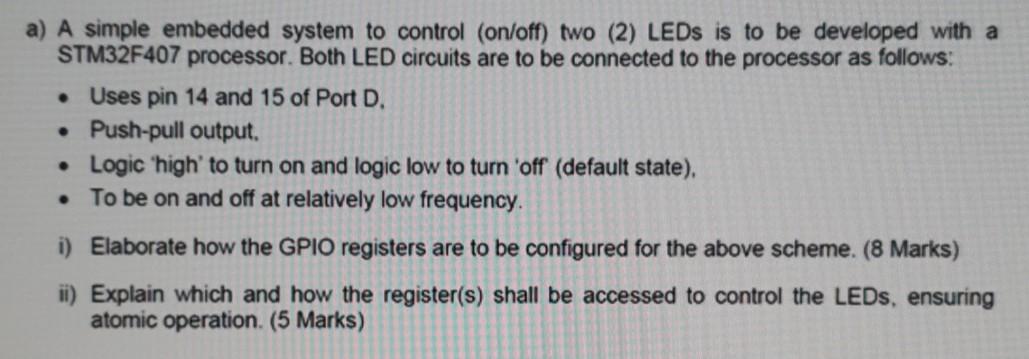 Solved a) A simple embedded system to control (on/off) two | Chegg.com