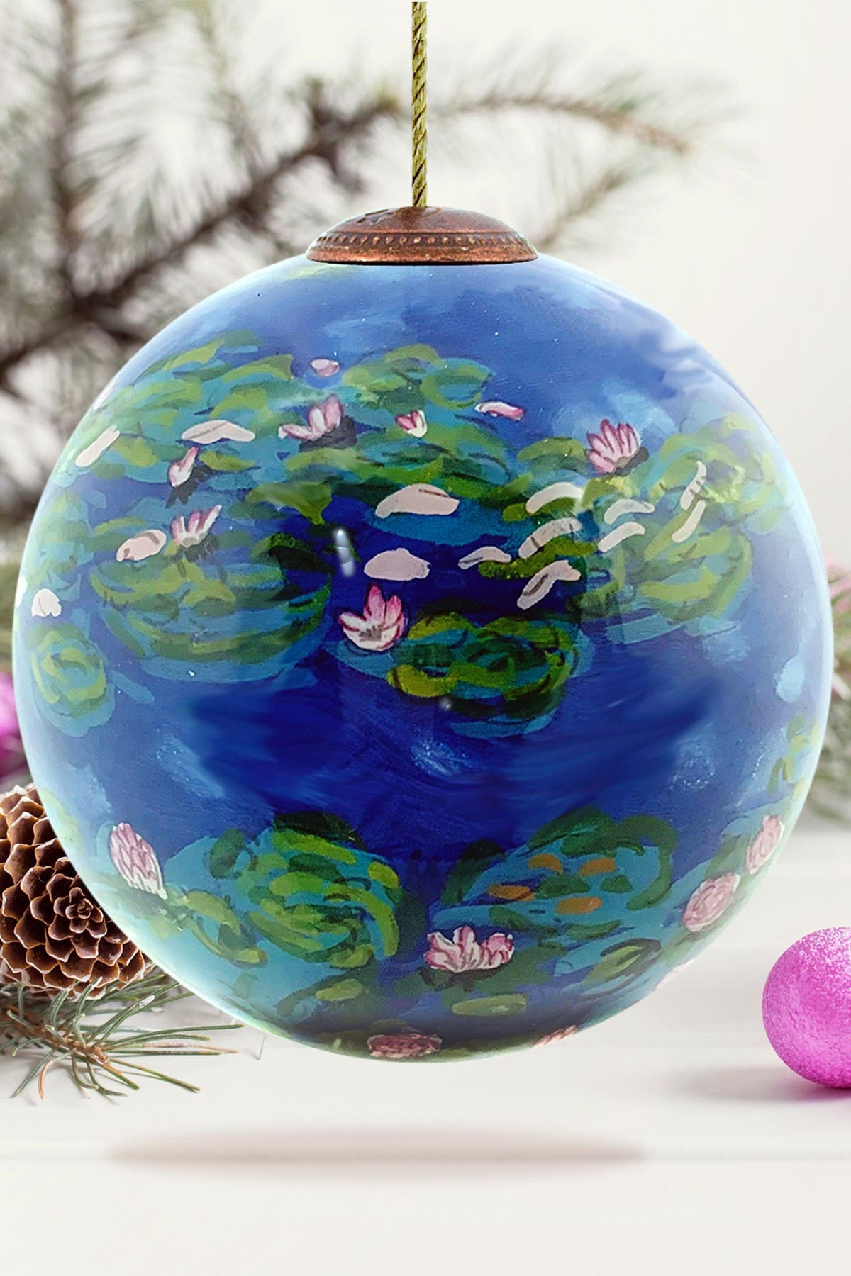 OVERSTOCK ART "Water Lilies" Claude Monet Hand Painted Glass Ornament ...