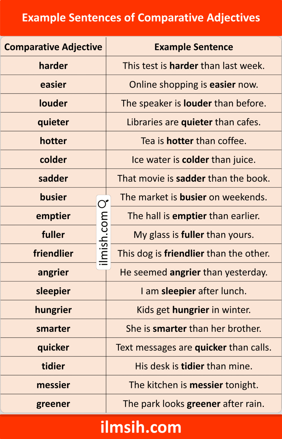 20 Examples of Comparative Adjectives in Sentences - EngDic