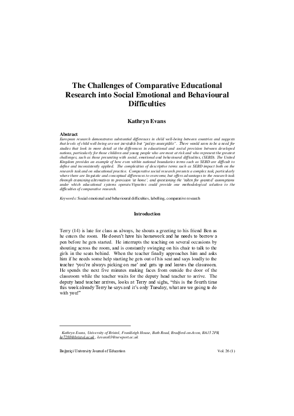 (PDF) The Challenges of Comparative Educational Research into Social ...