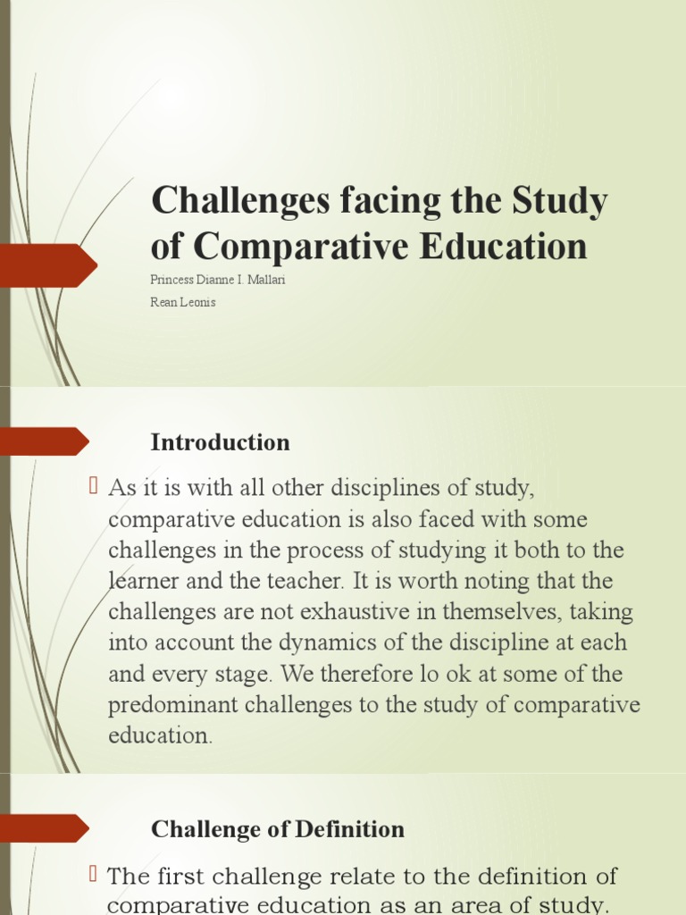 Challenges Facing The Study of Comparative Education: Princess Dianne I ...