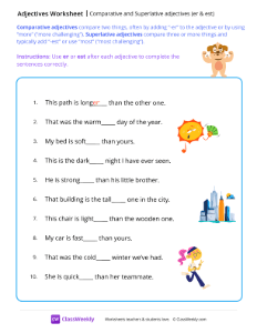 Comparative & Superlative adjectives Worksheets for 2nd Grade | Free ...