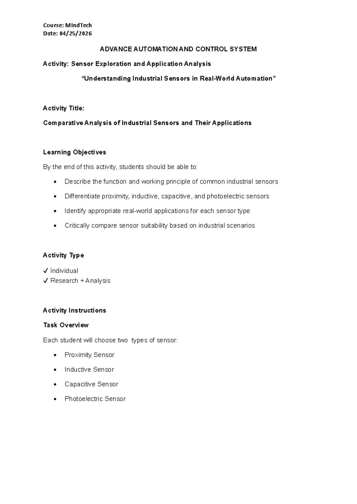 MIndTech: Comparative Analysis of Industrial Sensors and Applications ...