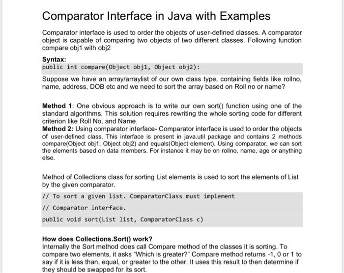 SOLUTION: 4 comparator interface in java with examples - Studypool