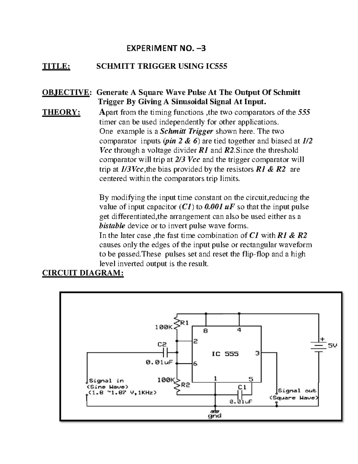 Manual of Schmitt Trigger: Generating Square Wave Pulses - Studocu