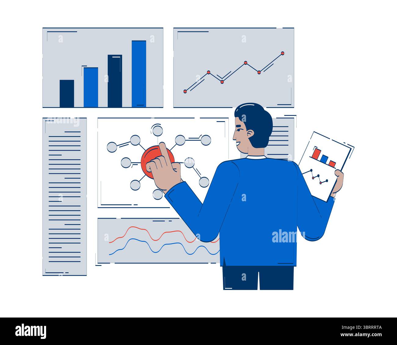 Comparing results and data evaluation doodle illustration concept Stock ...