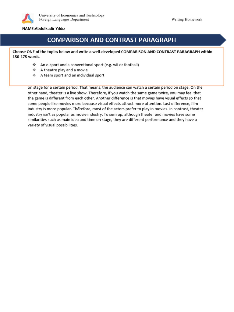 Homework-Comparison and Contrast Paragraph 2 | PDF