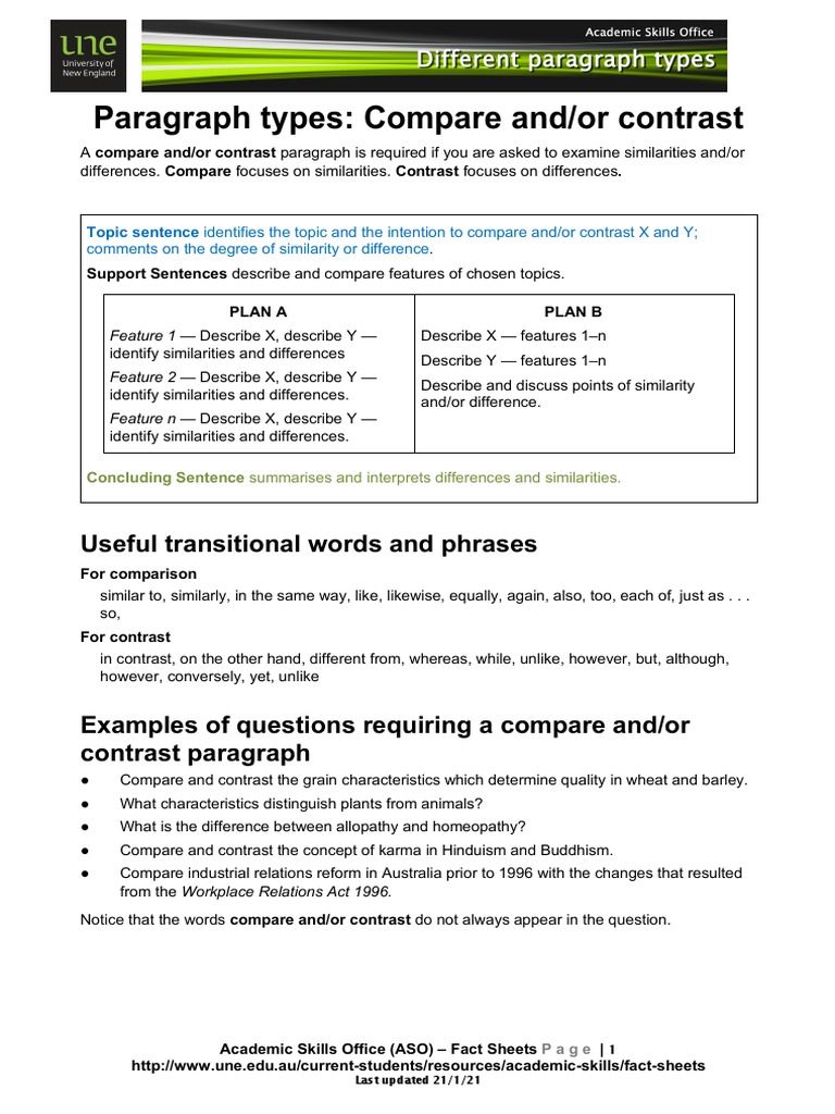Comparison and Contrast Paragraph | PDF