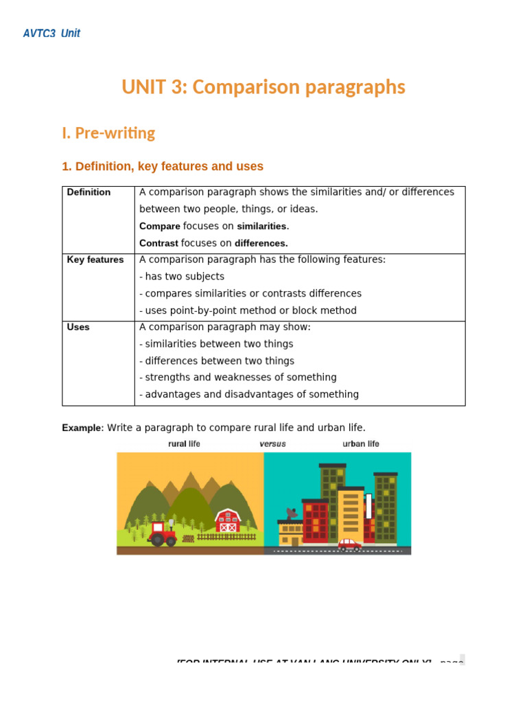 (HK241) AVTC3 - Unit 3 - Comparison Paragraph-Before Class | PDF ...
