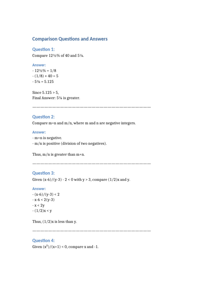 Comparison Type Questions for Competitive Exams - Verbal Reasoning