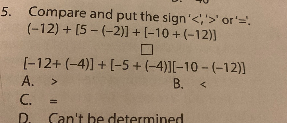 Compare and put the sign '' or '='. (-12) + | StudyX