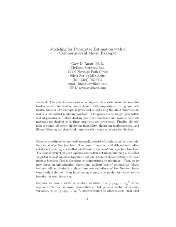 (PDF) Modeling for Parameter Estimation with a Compartmental Model Example