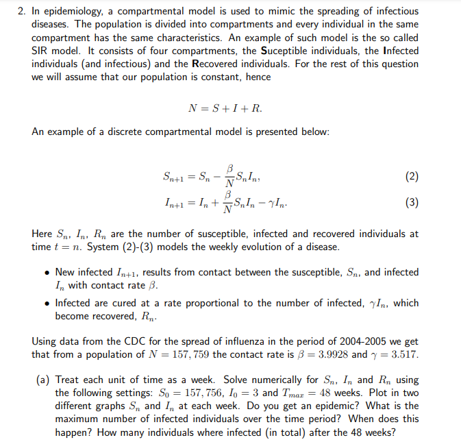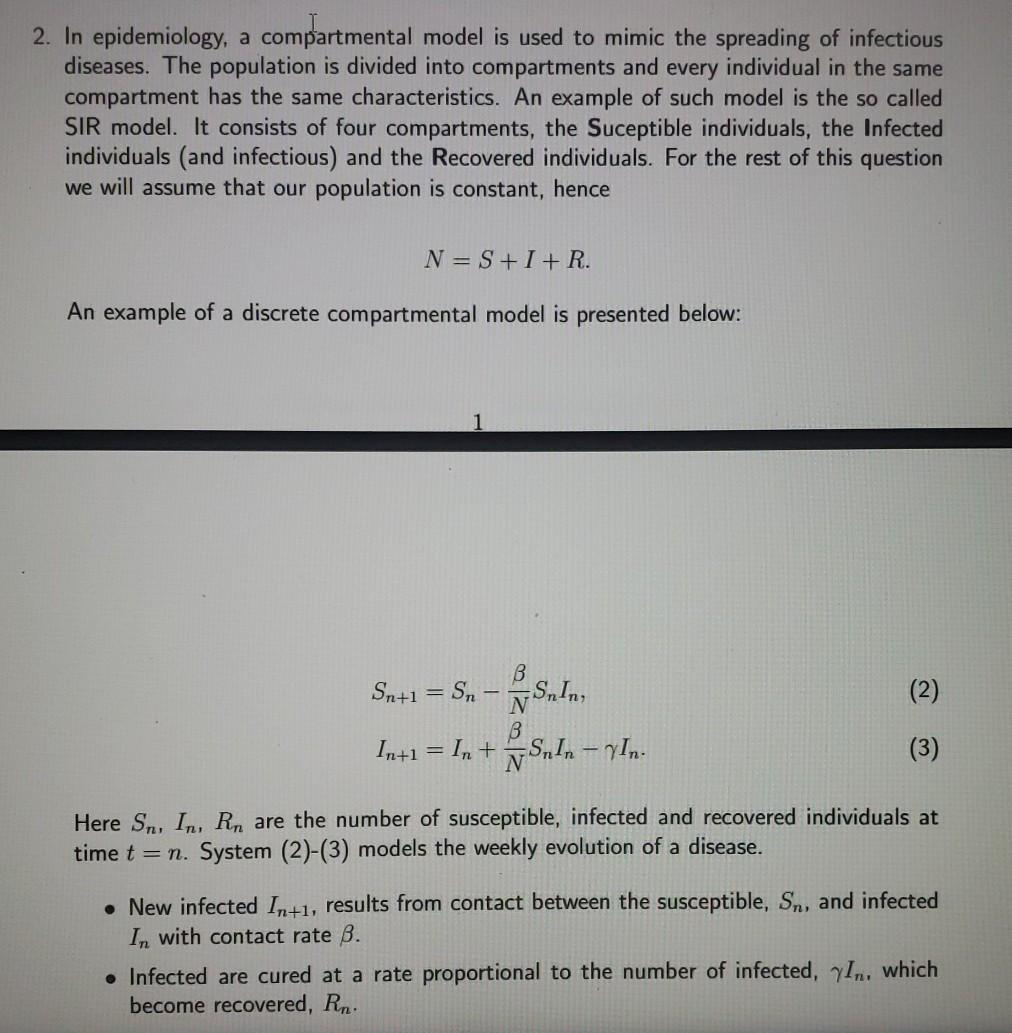 Solved 2. In epidemiology, a compartmental model is used to | Chegg.com