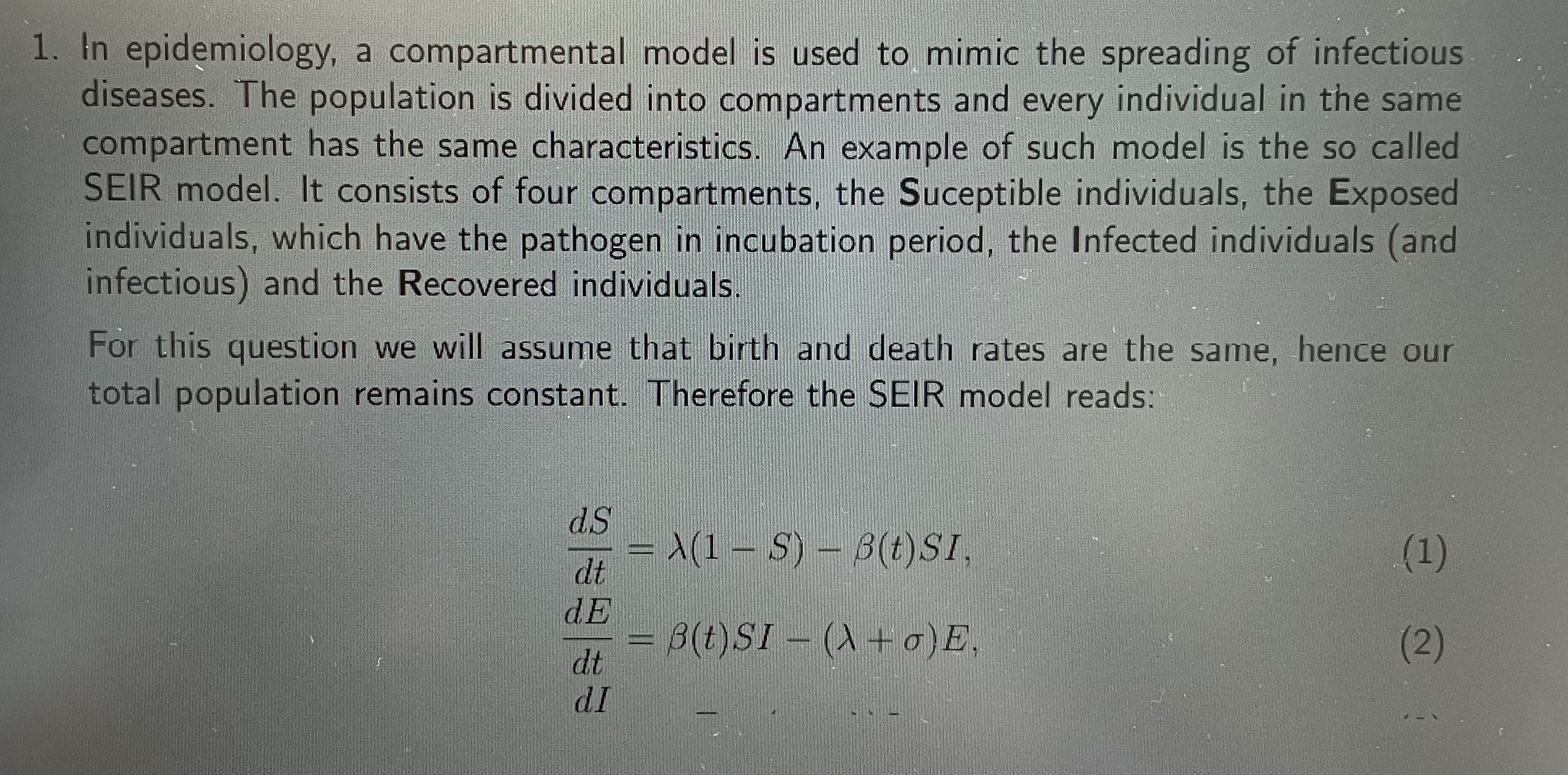 Solved In epidemiology, a compartmental model is used to | Chegg.com