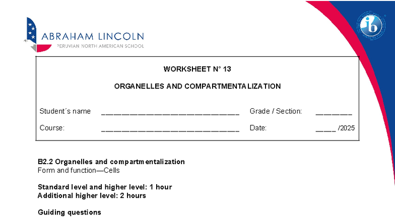 Biology Worksheet 13: Organelles & Compartmentalization Overview - Studocu