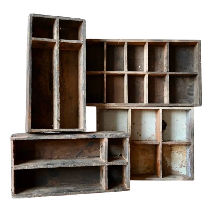 Large Industrial Wooden Compartmented Workshop Boxes, Set of 4 | Chairish