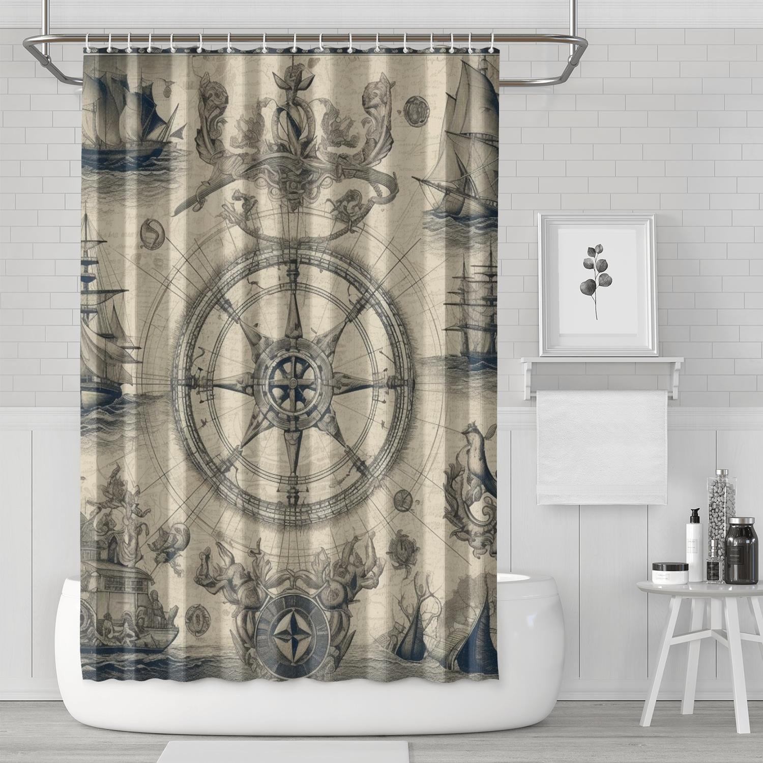 Ship Wheel Compass Decor Shower Curtains, Farmhouse Shower Curtains for ...