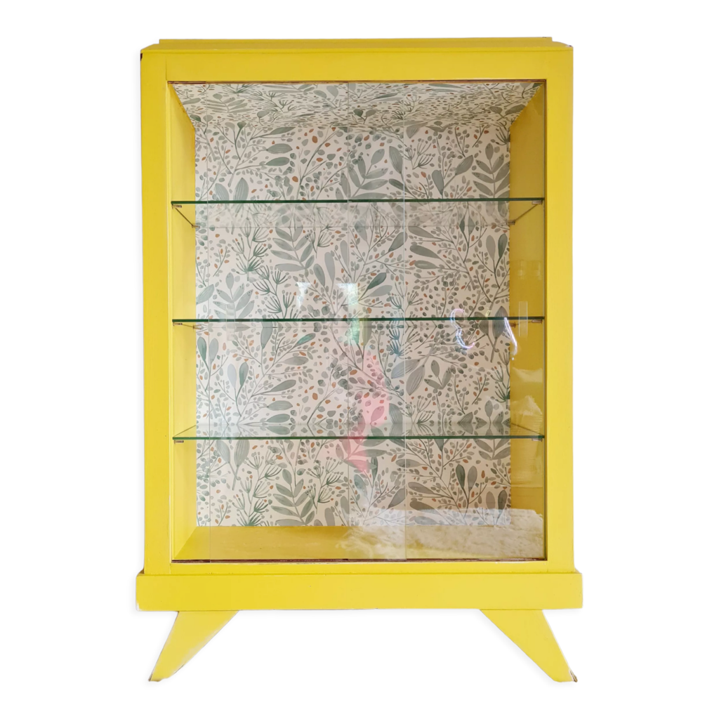 Vitrine bibliothèque pieds compas vintage jaune | Selency