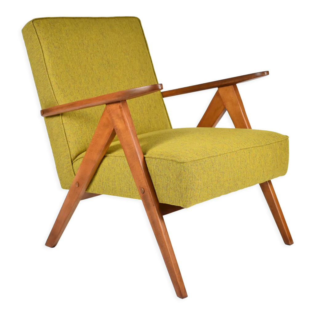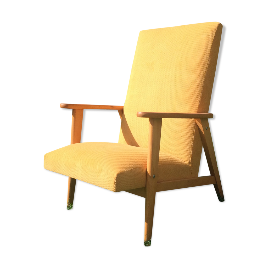 Fauteuil vintage pieds compas jaune – années 60 | Selency