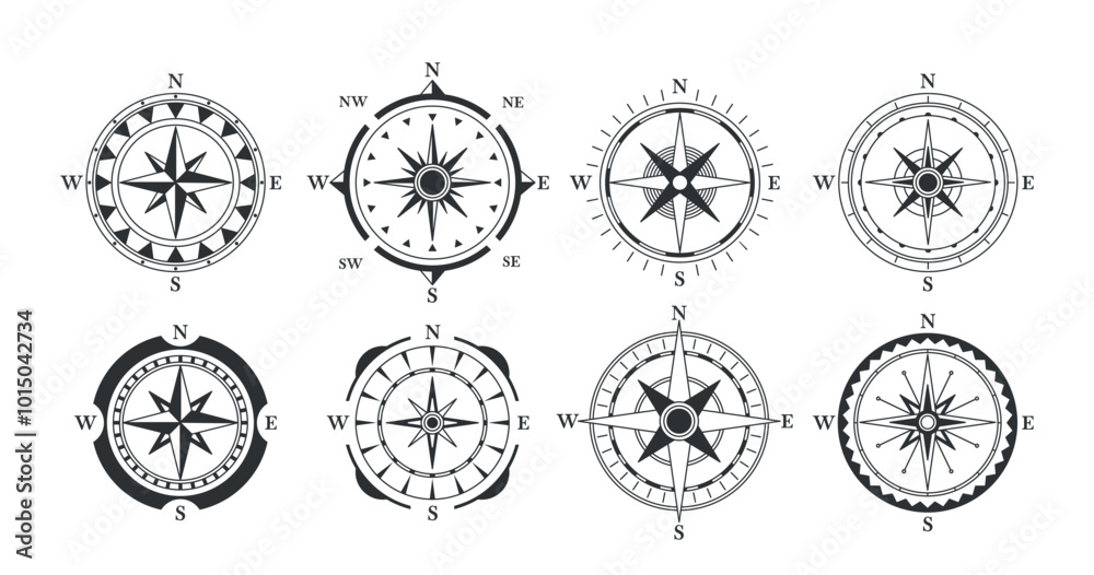 Collection Of Vintage Compass Designs Featuring Directional Arrows ...