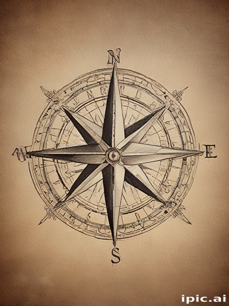 A Vintage Compass Design Illustrating Directions of North, South, East ...