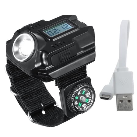 facefd LED Wrist Flashlight Rechargeable Compass Watch Light Outdoor ...