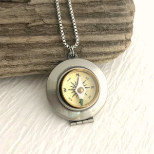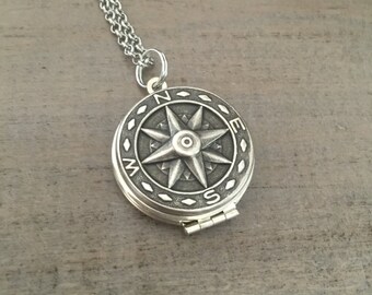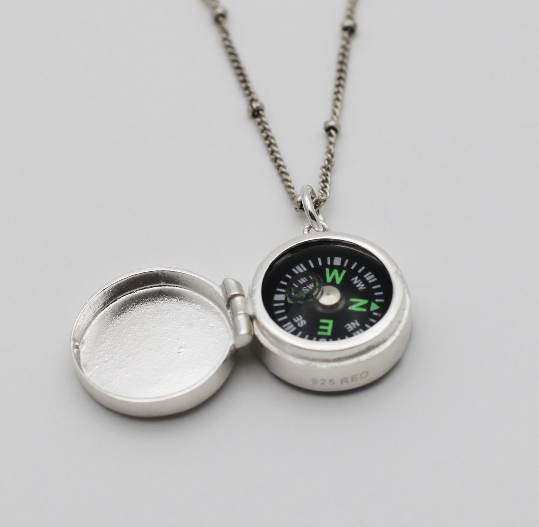 Compass Locket Necklace Silver Compass Jewelry Photo Picture - Etsy