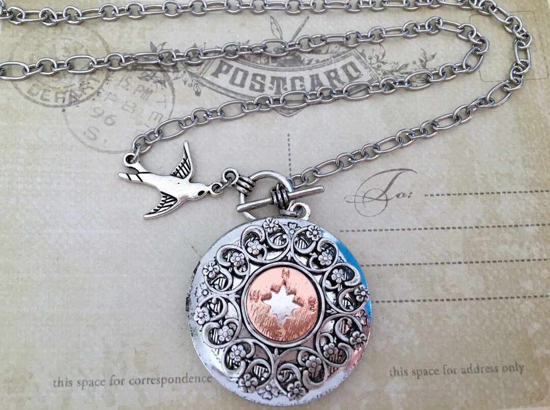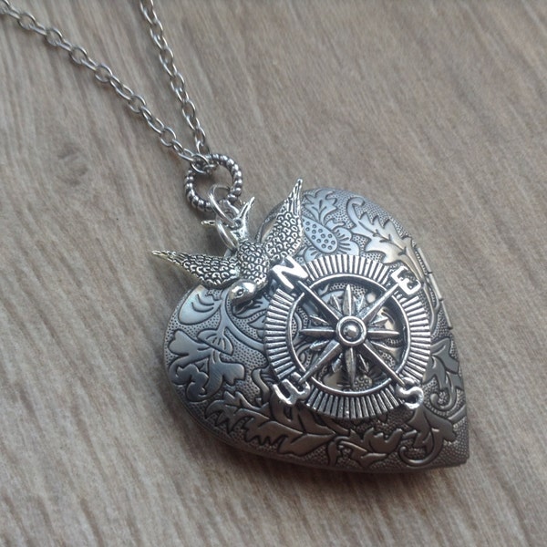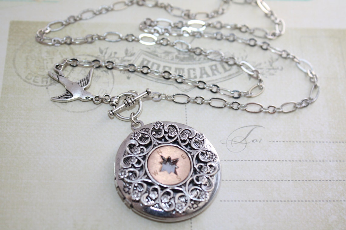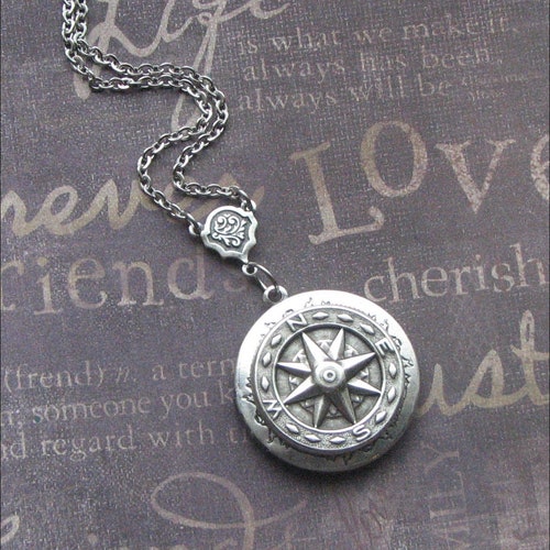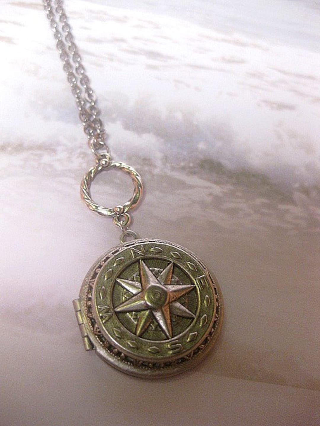 Compass Locket Necklace by SBC, Compass Locket, Antique Silver Locket ...