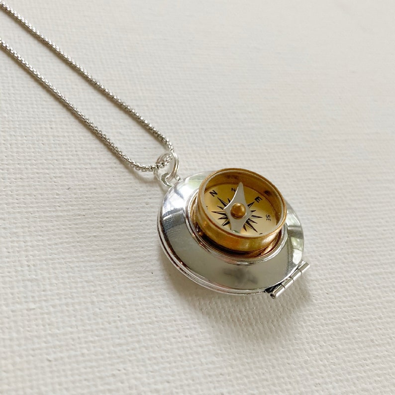 Compass Locket Necklace | Sterling silver locket necklace, Compass ...