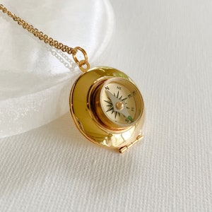 Compass Locket Necklace With Photos, Gold Working Compass Pendant ...