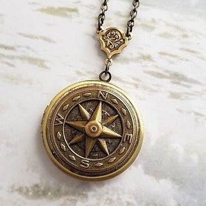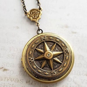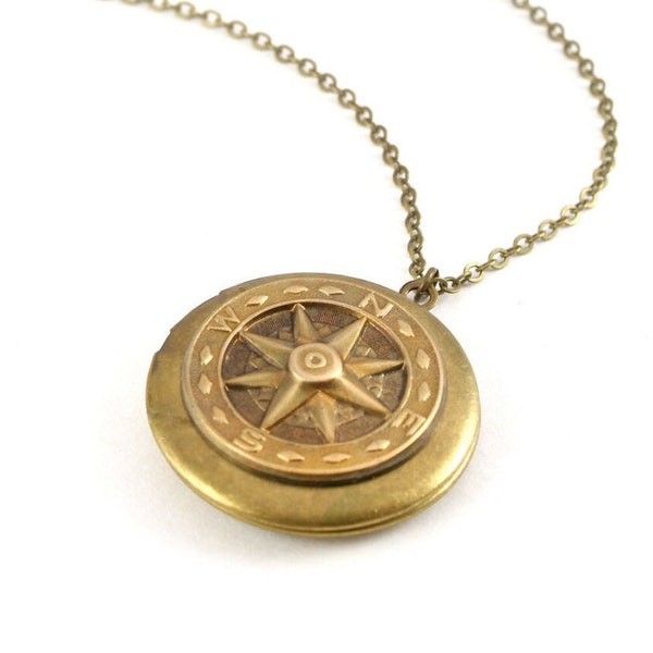 Compass Rose Locket Necklace, Nautical Locket, Antique Brass Round ...