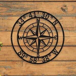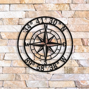 Personalized Coordinate Compass Sign Nautical Compass Sign | Etsy